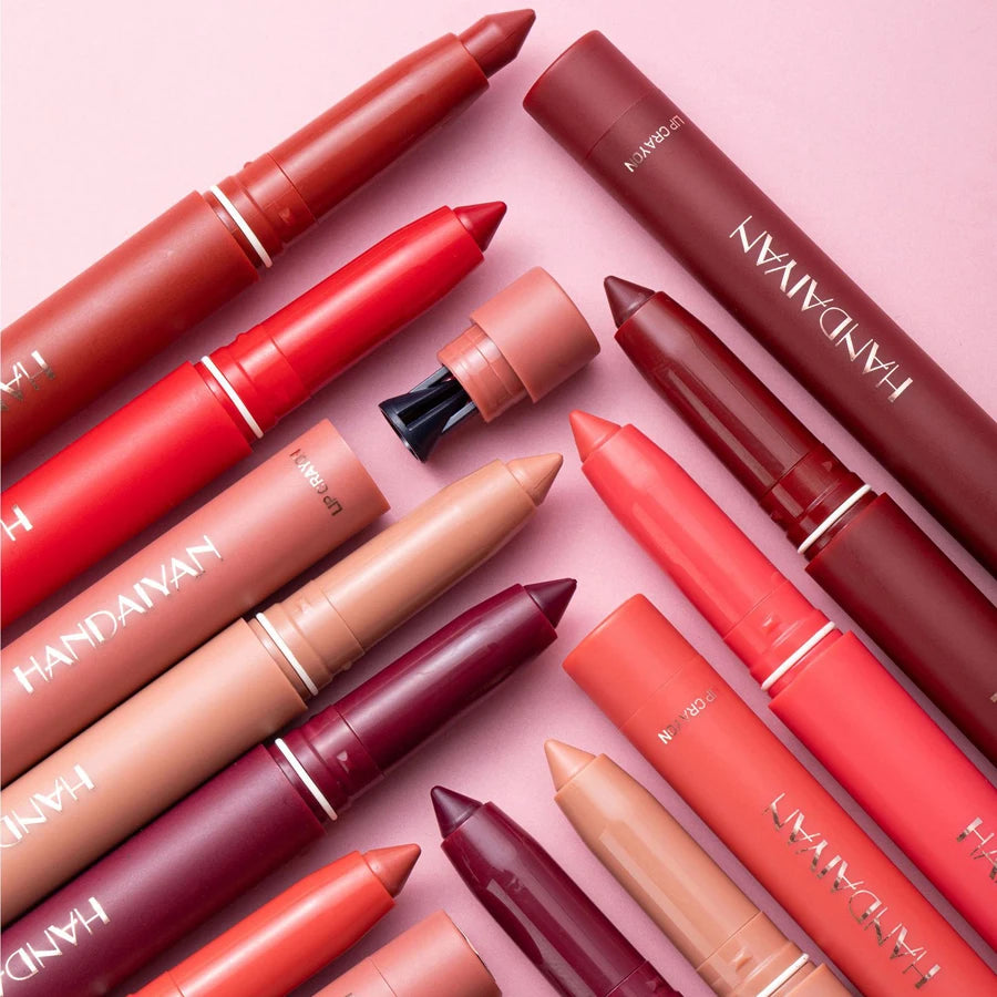 12 Pcs/Set Lipstick Fadeless Non Staining Cup Matte Lipstick Waterproof Pen Lip Rotatable Lipliner With Pencil Sharpener
