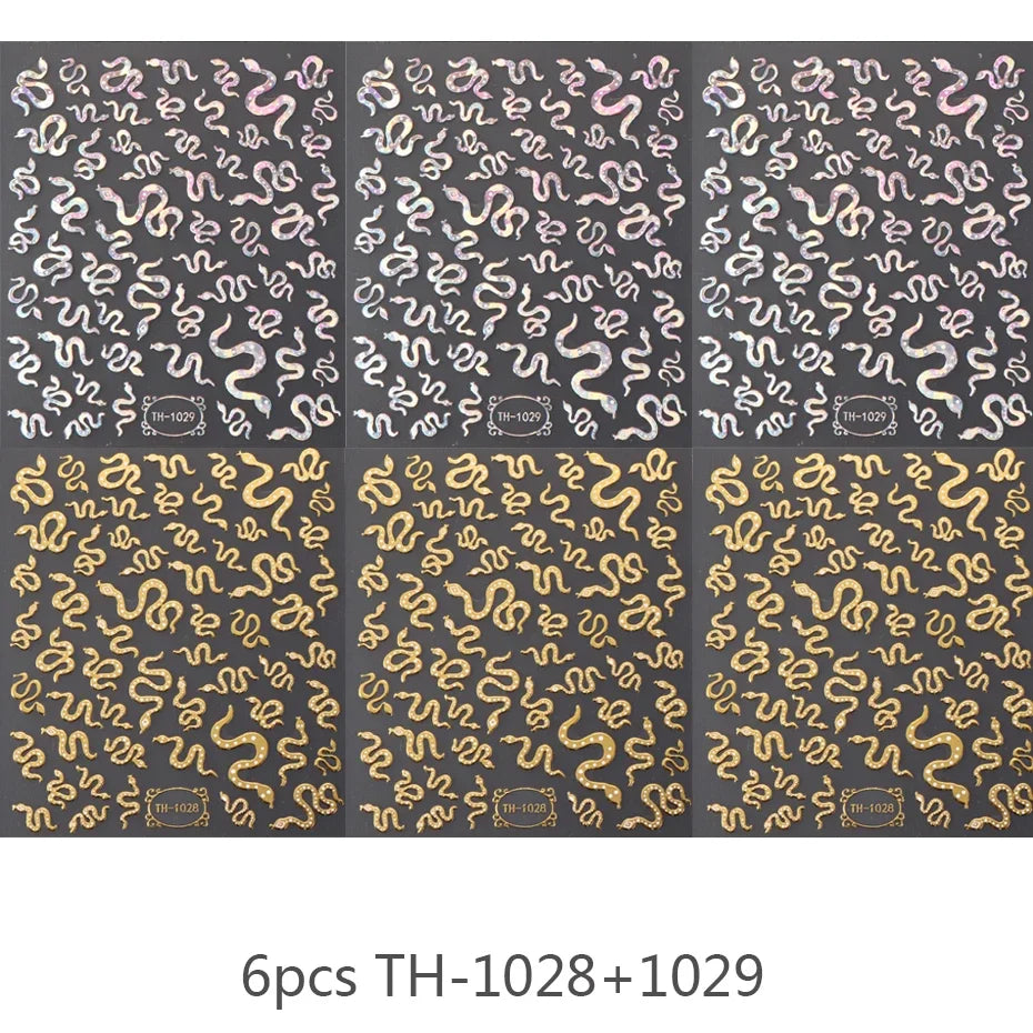 3DLaser Sakura Nail Stickers Holographic Laser Snake Pattern Slider Sakura Water Transfer Nail Decoration Set