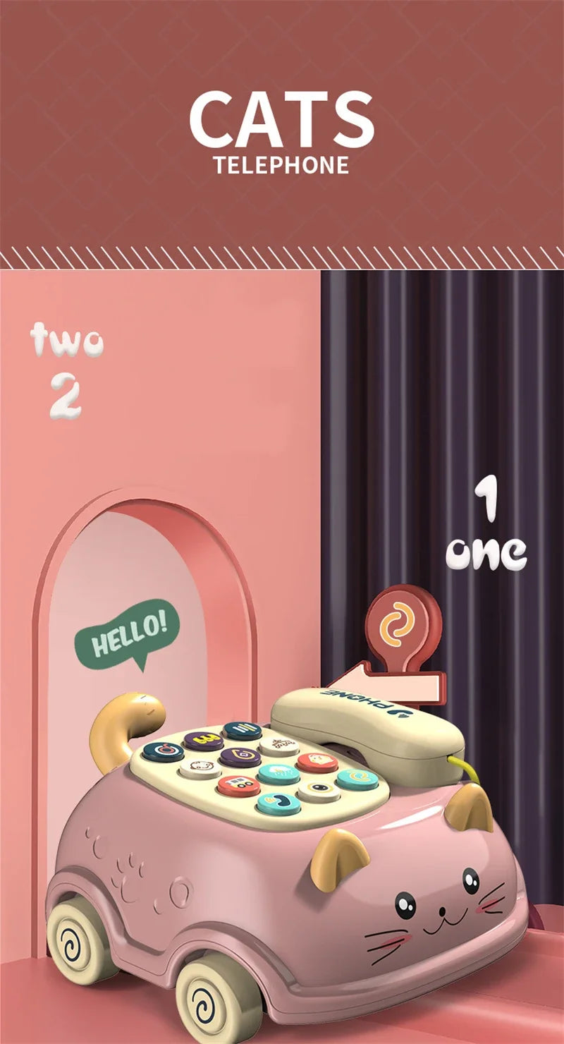 Baby 3-in-1 Musical Phone Toys Toddler Interactive Learning Toy with Lights Cat Telephone Story Early Education Montessori Gift