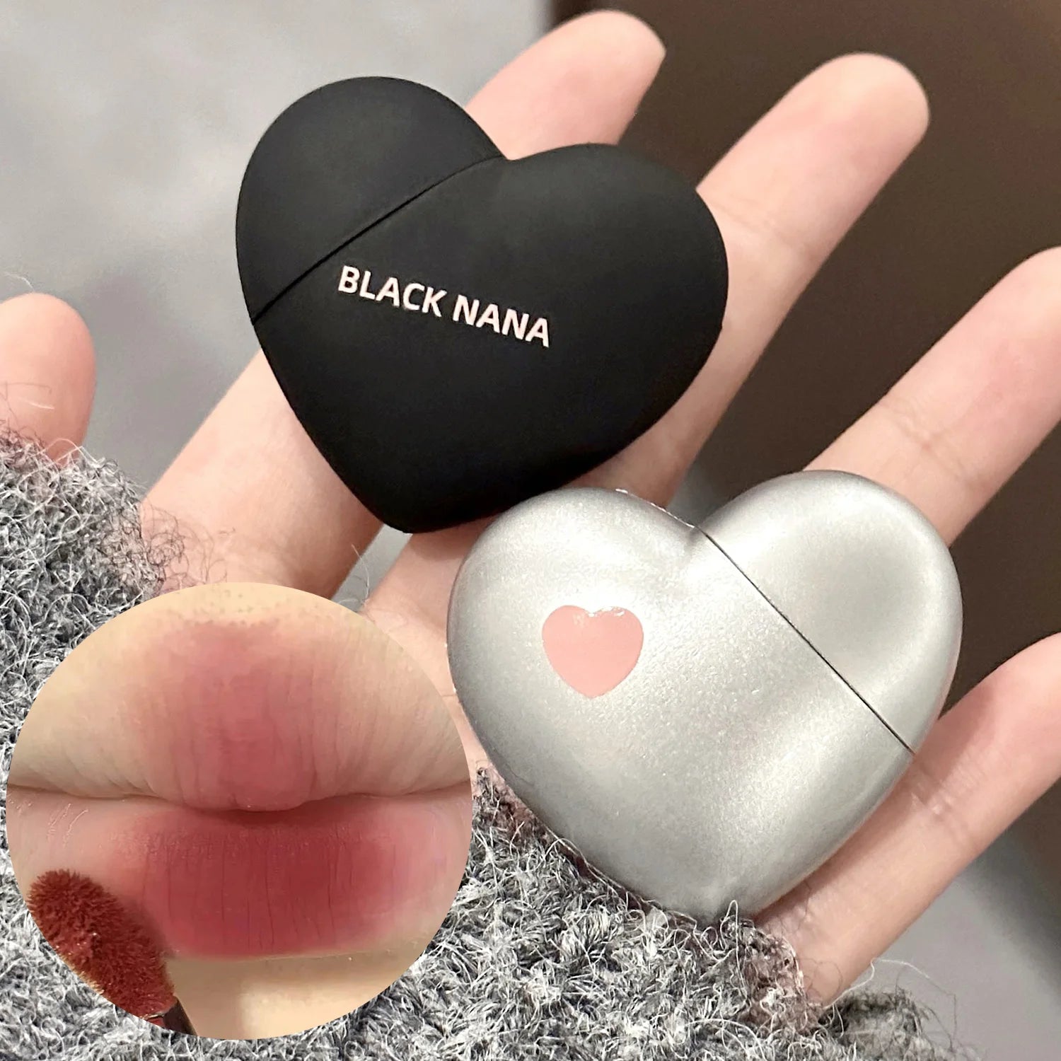 Black Silver Heart Lipstick Velvet Matte Lip Mud Clay Lip Gloss Liquid Lip Tint Cream Pigment Long Lasting Silky Lips Cosmetics