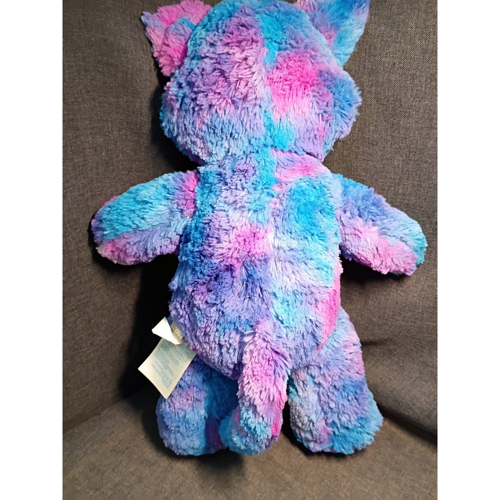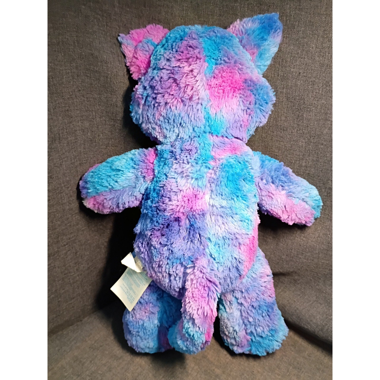 This adorable Build-A-Bear kitty is ready to find a new home! This plush toy features a unique starry design in purple and blue that glows in the dark, making it a fun and comforting companion for children. It is in great condition and comes from a smoke-free home. Measures 17 inches.