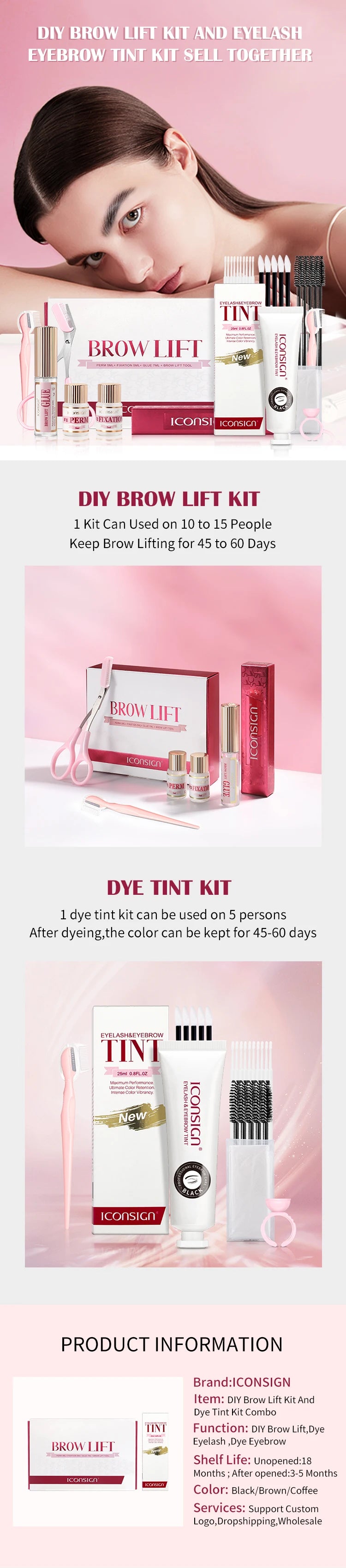 New ICONSIGN Brow Lift Kit and Eyelash Eyebrow Dye Tint Combo Brow Perm Brow Dye Brow Tattoo Cream Eye Makeup Tools Dropshipping