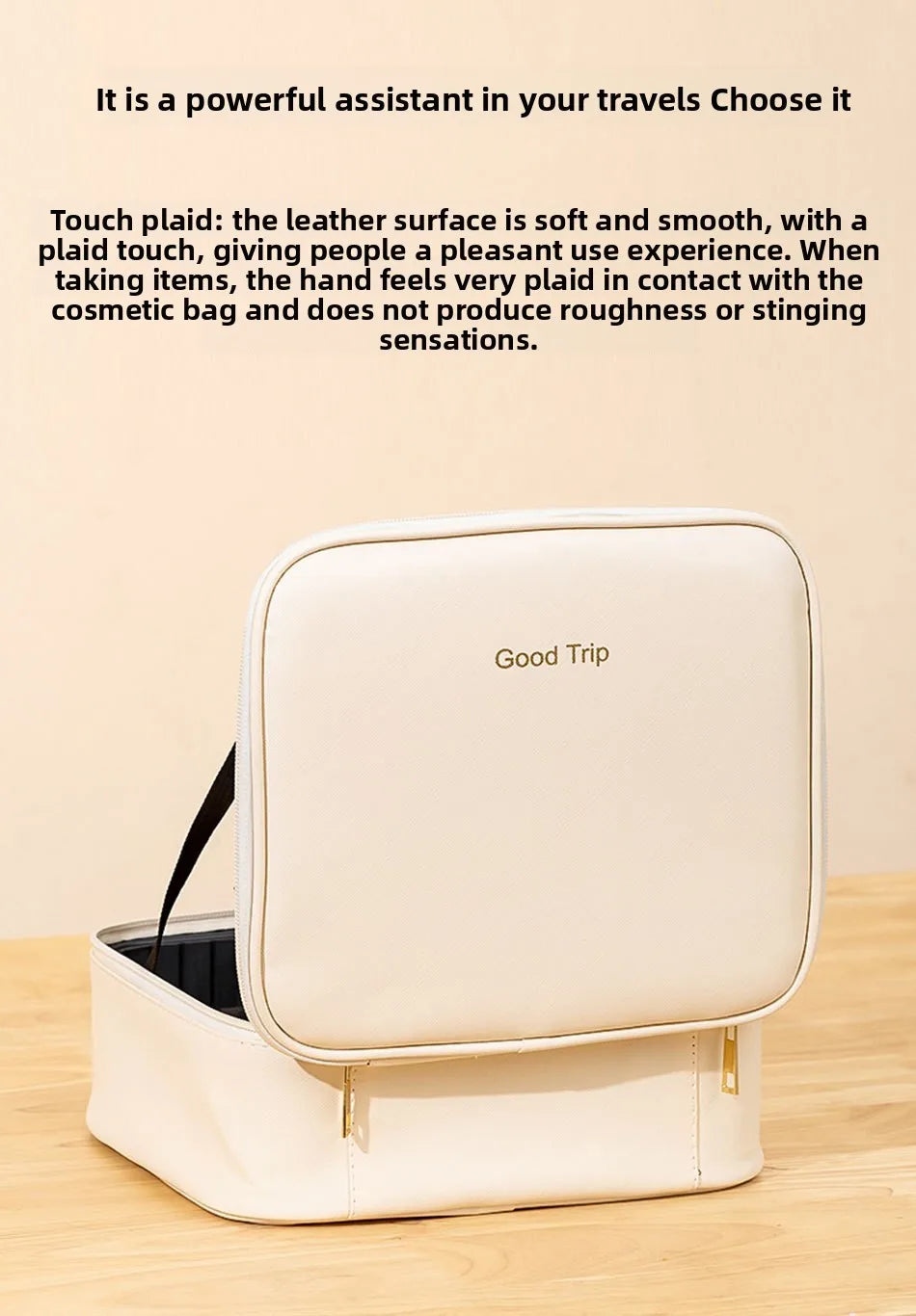 Premium LED Travel Cosmetic Bag with Mirror Women's Portable Large Capacity Makeup Brush Case Portable Partition Beauty Bag