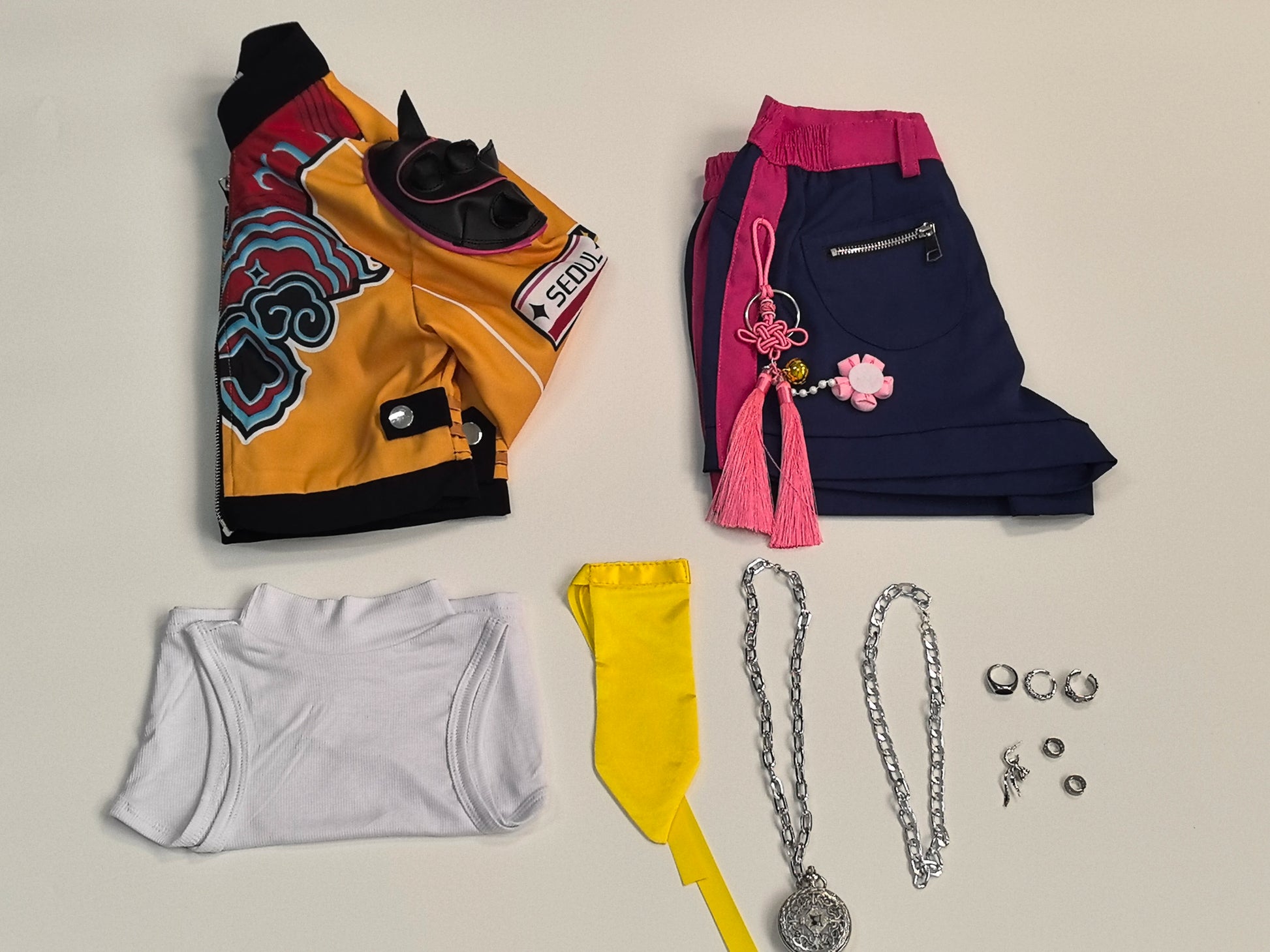 Rumi Cosplay Costume Anime Movie KPop Demon Hunters Yellow Jacket Huntrix Uniform Earrings Shorts Halloween Women Girls