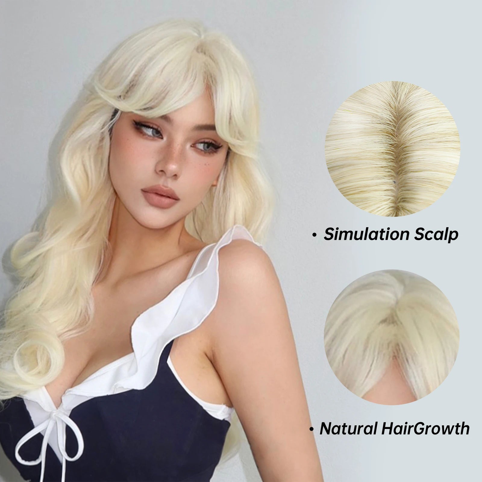 Blonde Ginger Yellow Lolita Cosplay Synthetic Wigs Long Curly Wavy Natural Hair with Bangs for Women Party Heat Resistant Wig