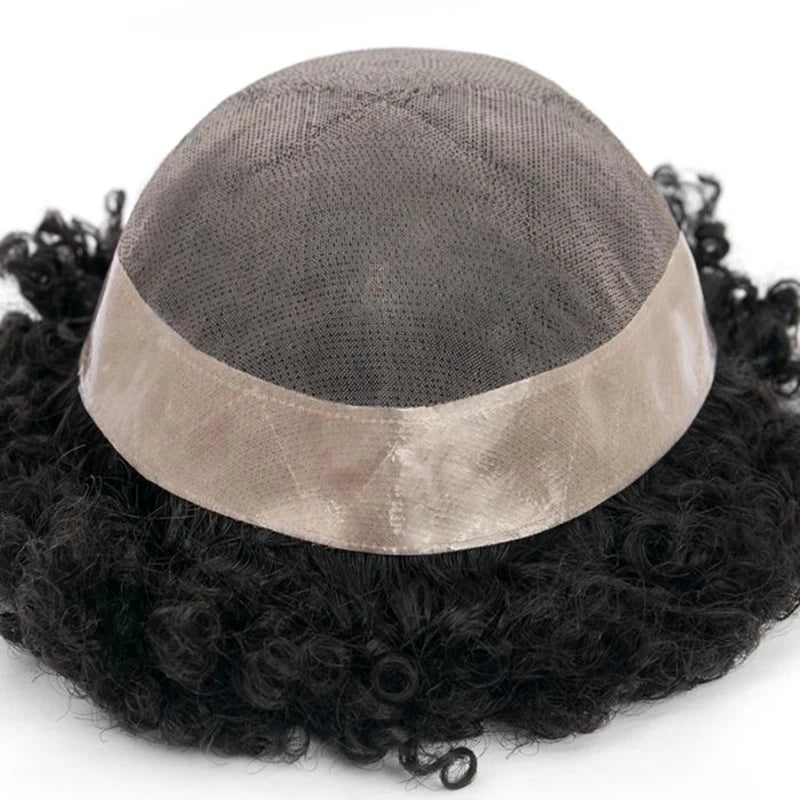 Curly Men's Wig Mono Npu Indian Human Hair Toupee For Men Durable Capillary Prosthesis Natural Black Wigs Man 6inch Hairpieces