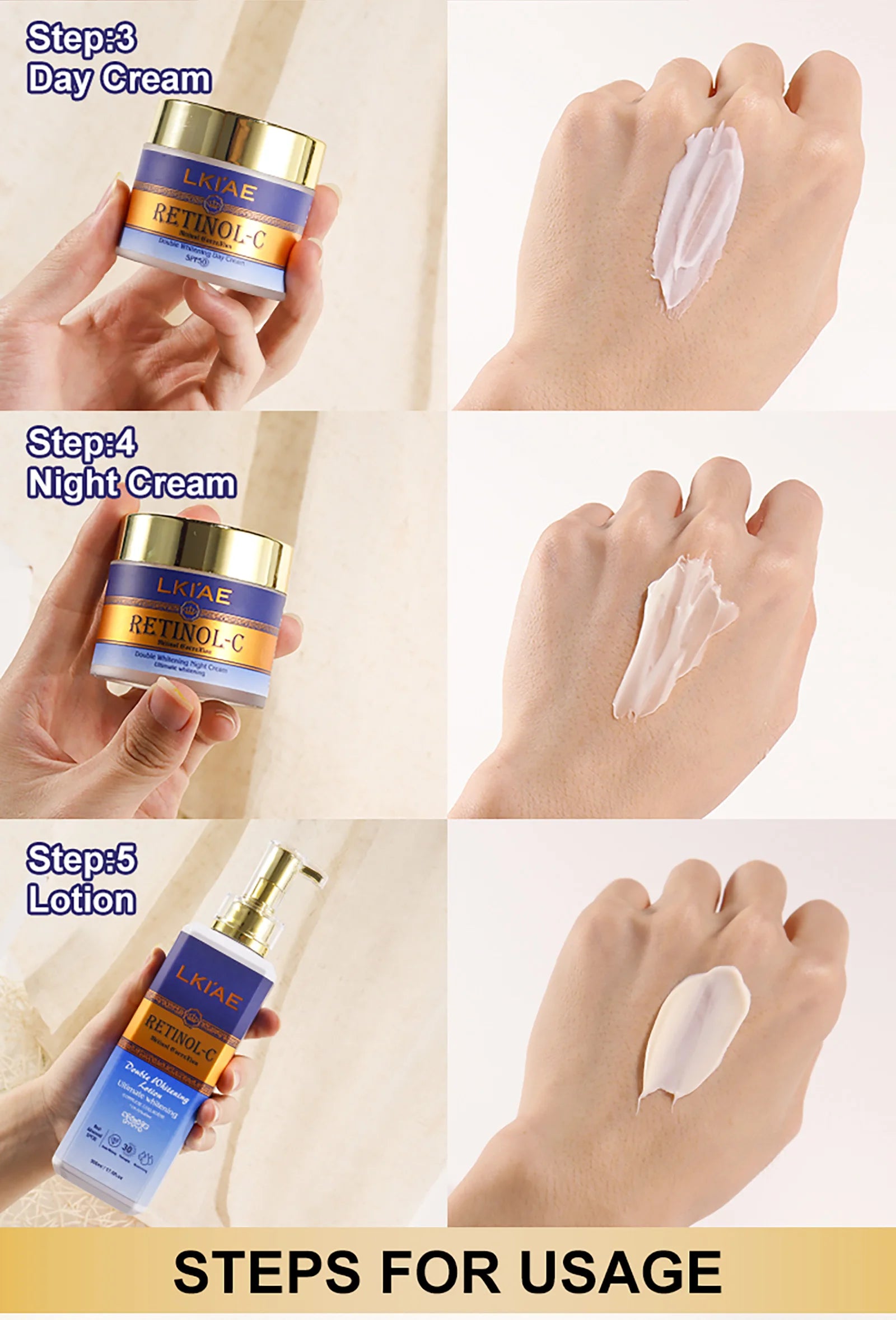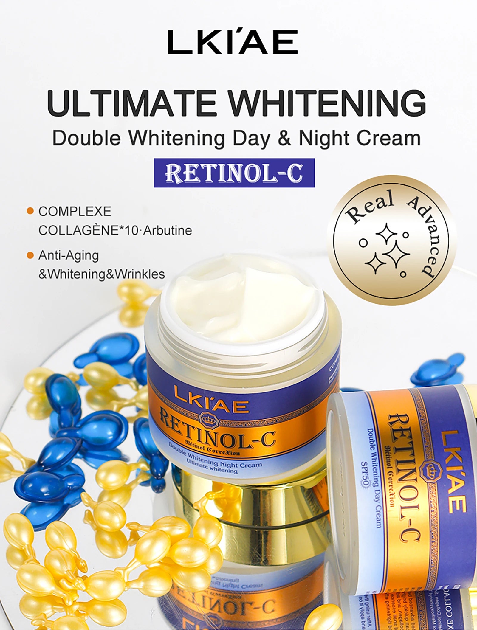LKIAE Retinol Whitening Skin Care Set, Moisturizing, Reduce Wrinkles, Fine Lines, Dark Spots, With Collagen, Snail Extract