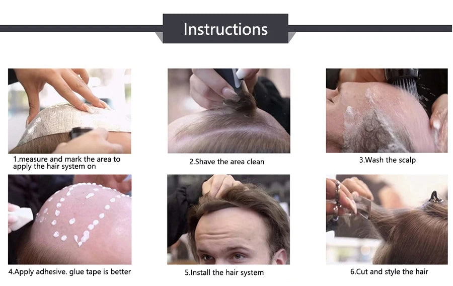 Men Wig Toupee For Men Natural Hairline Indian Human Hair Men's Capillary Prothesis Hair Wig Male 0.1mm Thin Skin Hair Wig