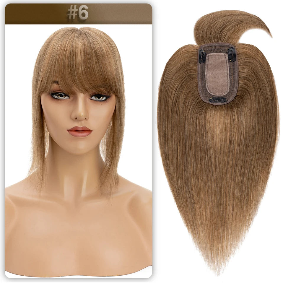 S-noilite Women Toppers Hair With Bangs Human Hair 7x13cm Silk Base Hair Cilp Wig Clip In Hair Extensions Hairpiece Natutal Hair