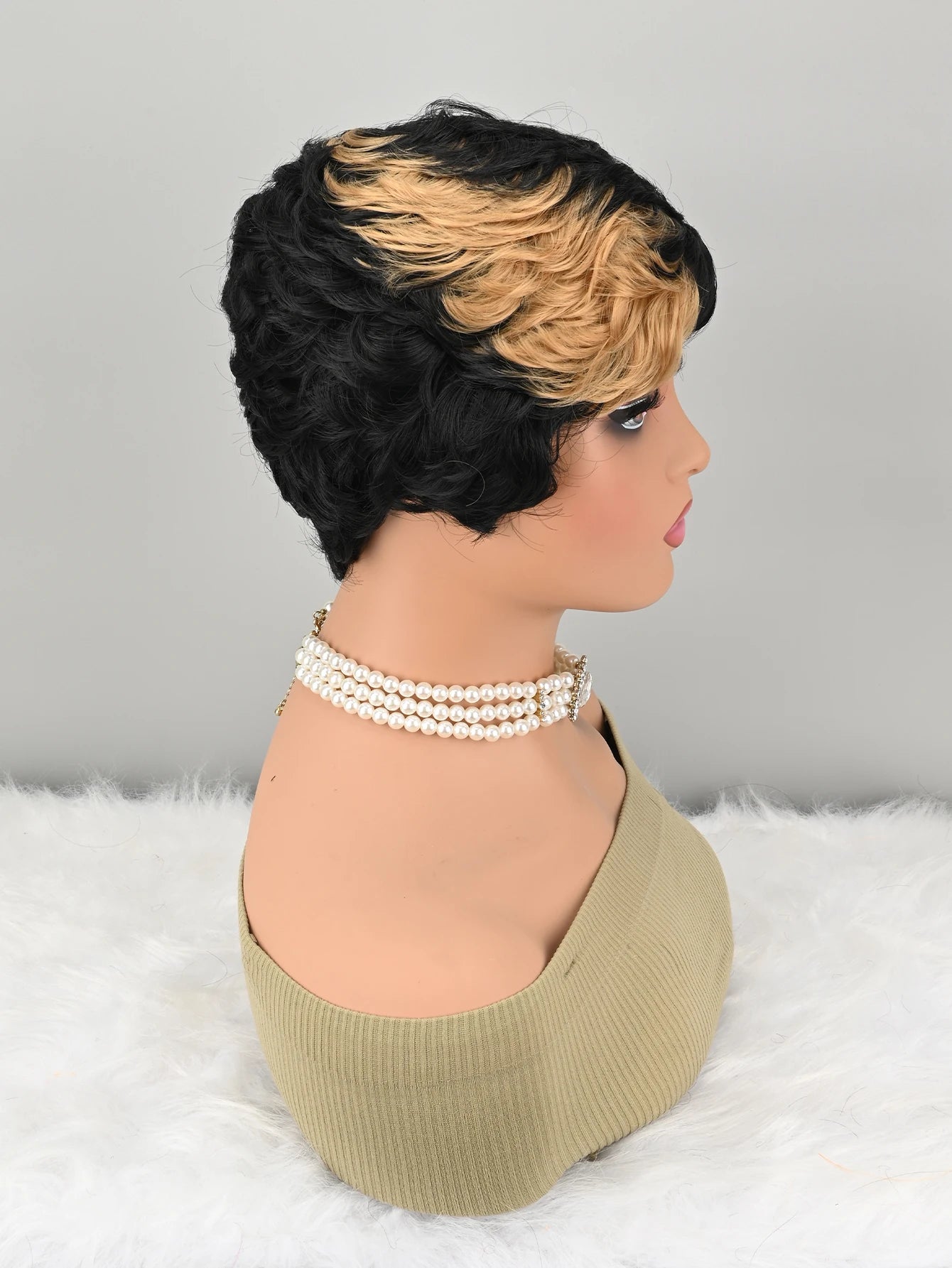 Short Bob synthetic Wig for Pixie Cut wigs Glueless Wig None Front Wig with Bangs Straight Full