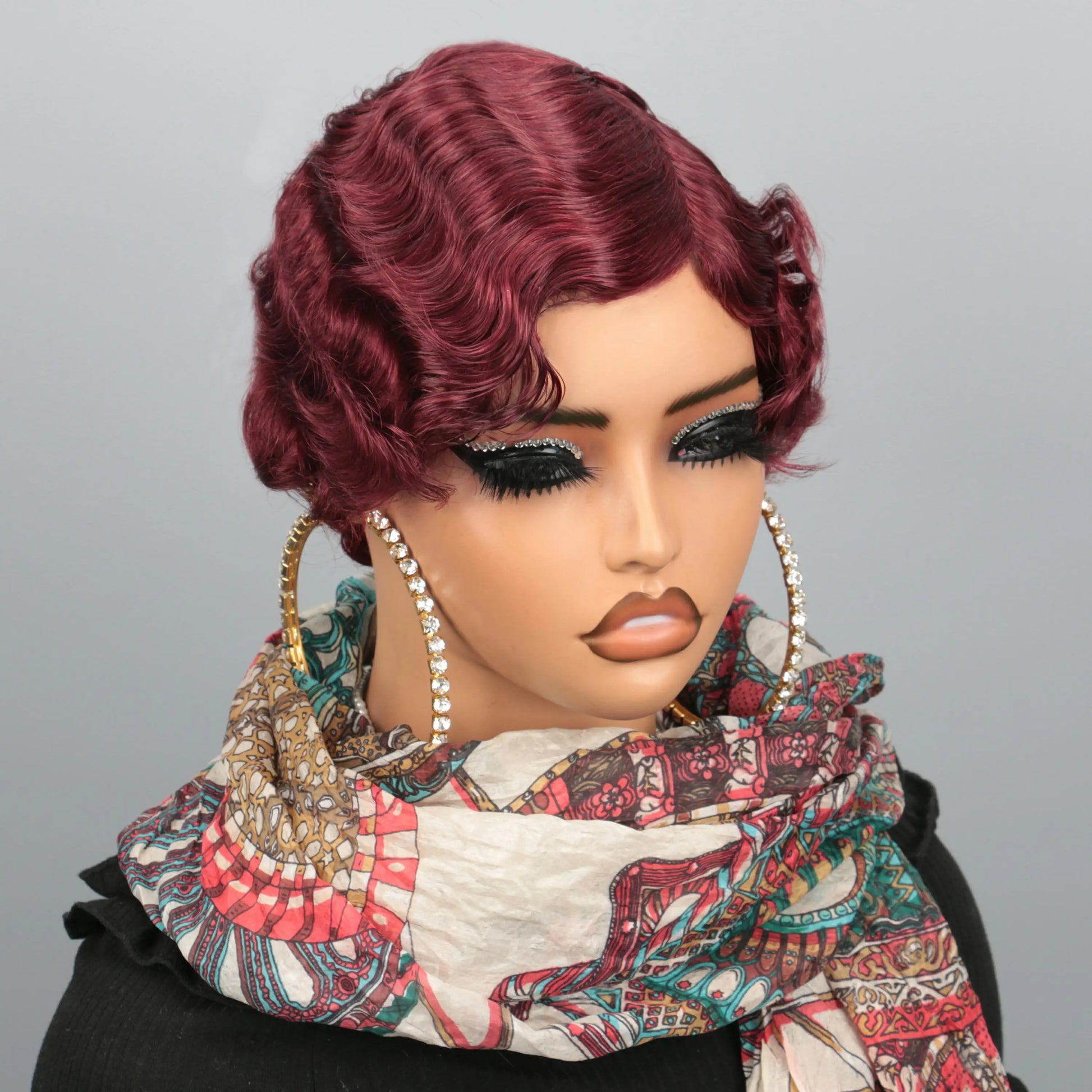 Short Pixie Cut Wigs For Black Women Finger Ocean Wave Human Hair Wigs With Bangs Short Layered Pixie Wigs Full Machine Made Wig