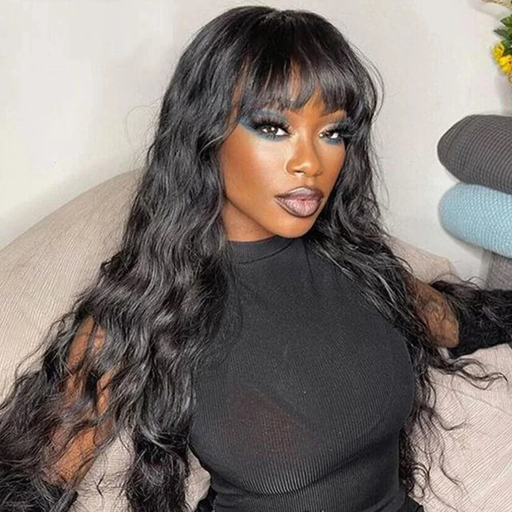Varlea 200% Density Body Wave Human Hair Wigs Full Woven With Bangs Wig No Lace Wig Loose Body Wave Short Bob Human Hair Wigs