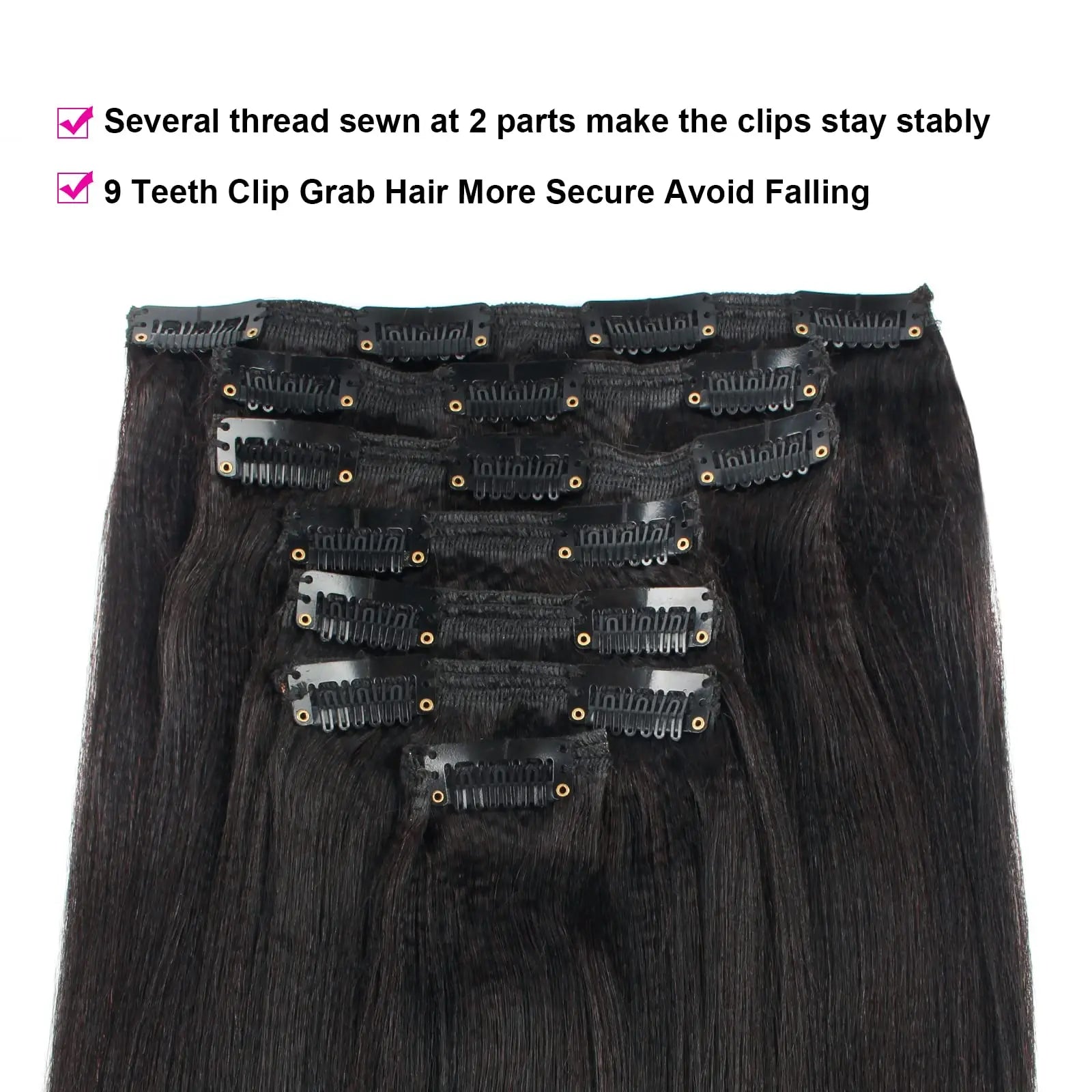 Yaki Straight Clip in 100% Human Hair Extensions Double Weft Straight Clip in Hair Extensions Human Hair 12-26inches for Women